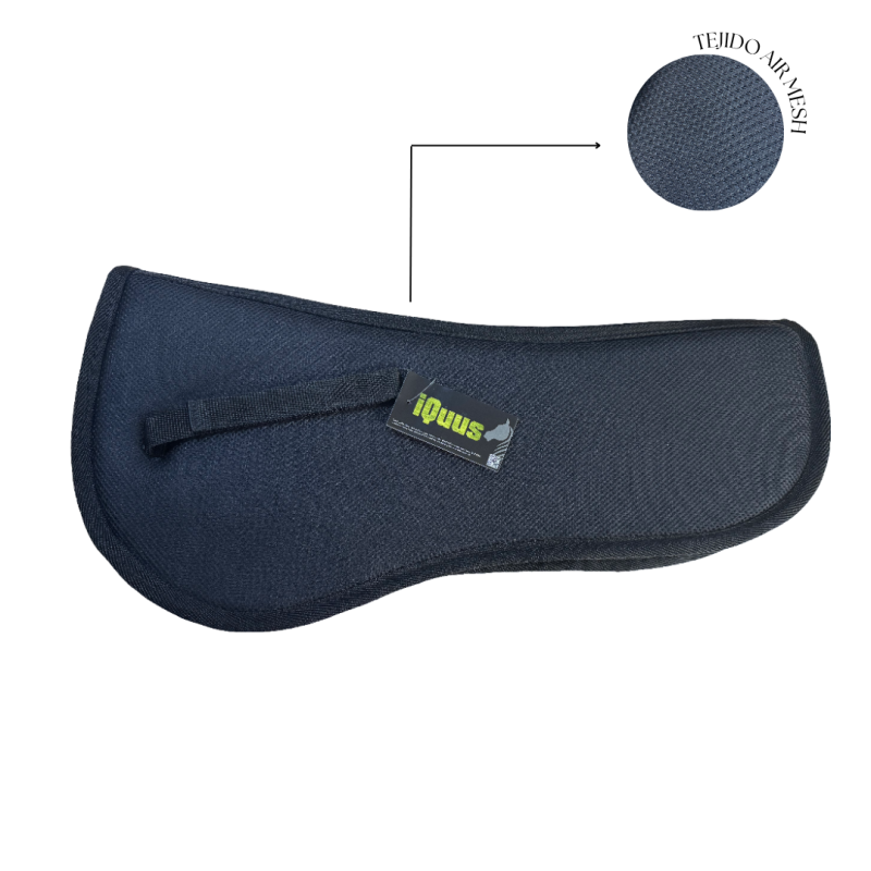 Ligero, resistente y de secado rápido, se adapta perfectamente al lomo del caballo, reduciendo la presión y mejorando la distribución del peso de la montura. La combinación ideal de tecnología y bienestar para tu caballo.